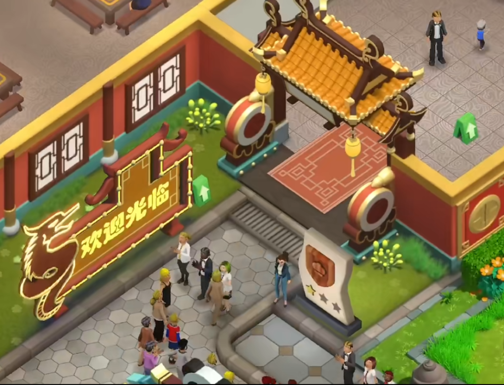 拿中餐厅举例,门口摆放着的是,龙、熊猫、灯笼、飞檐等一些带有中式元素的摆设,不过这些摆设有着非常明显的西方中式建筑的特征,颇有一种《功夫熊猫》或《花木兰》动画电影的感觉。而对于欧美玩家来说,这种特别的中式建筑风格,更加符合他们对于东方文化的想象。
