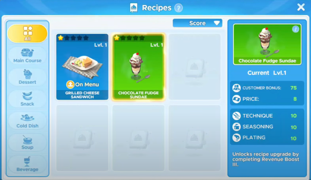 不同的菜系会在前期影响玩家的餐厅的经营方向。比如选择中餐厅,玩家在开局阶段研发和出售的菜品将以粽子,麻婆豆腐等中餐为主;而美式餐厅则以三明治,冰淇淋等西式餐点为主,不同的菜品也会有不同的价格。