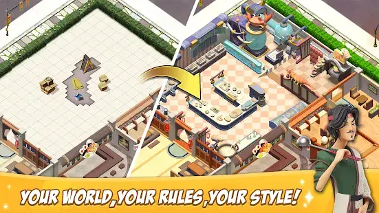 具体来看,游戏开头提供了一个面积非常大的餐厅,不过只有部分区域可以使用,玩家要随着剧情进程发展,而逐步赚取金币,从而解锁更多区域以扩大餐厅的面积。
