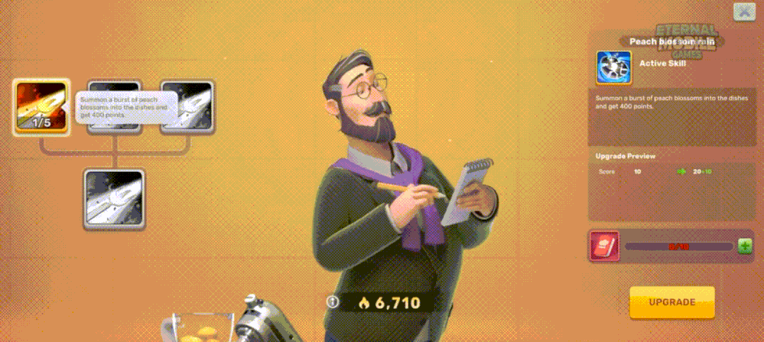 看到这里,你或许已经明白,《Chef Squad》模拟经营玩法的本质,其实是“Rok-like”中的城建玩法,例如餐厅等级对应着主城发展等级;厨师对应着将军;而菜谱则对应着科技树......等等。