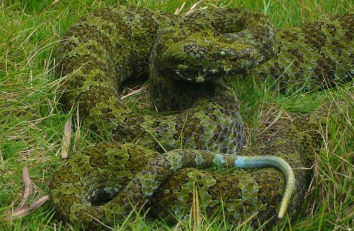 第二大毒蛇叫做莽山烙铁头蛇,之所以起这么奇怪的名字是因为它的头部呈三角形的烙铁状,由于体型较大,所分泌的毒液量也是很多。千万不要被它咬中,一旦不幸被咬到,毒液会以非常快的速度渗透到全身各处。毒性发作,如果医治不及时或者不正确,性命堪忧。