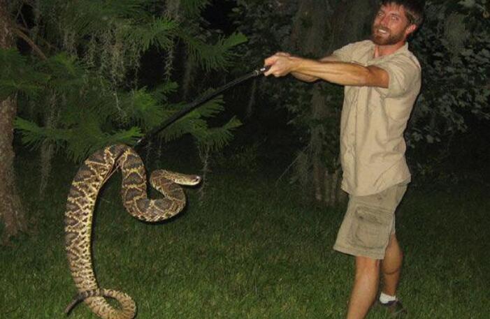 第三就是美国的东部鳞斑响尾蛇。这种蛇为了伪装适应环境,通体颜色较深,眼睛上有迷惑性的斑纹。它是美洲最重的毒蛇,东部还有一种与它很类似的毒蛇,但是无论在体型还是还是毒液量上都比它略逊一筹。