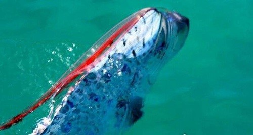 皇带鱼的样子十分难看,据了解它长约可达3到17米左右,重约80到300公斤,体亮银色,腹鳍红色,桨状,故英文原意为桨鱼,背鳍亦呈红色,很长,始於头顶如鬃冠,很少见於水面,有人偶尔见到,误为海蛇,也曾被东南亚误认为传说中的龙。