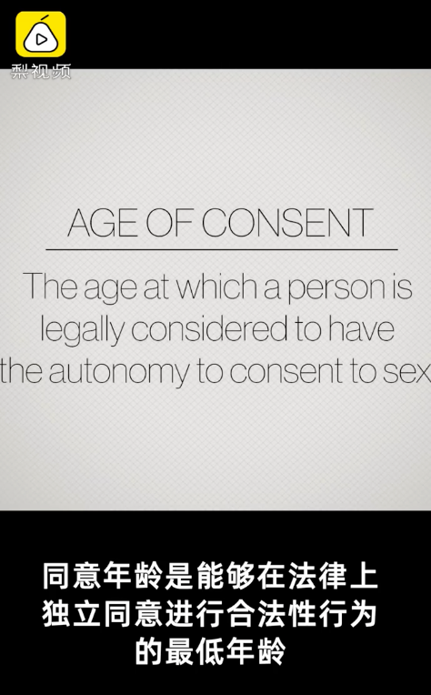 而同意年龄是指能够在法律上独立同意进行合法性行为的最低年龄,大多数国家把该年龄设置在12-21岁之间。即使不存在,一方对另一方的暴力以及威胁。法院的认知仍是未成年人到胁迫,因为未成年人心智尚未成熟,在法律上无法同意发生性关系。
