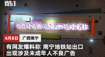 南宁地铁出现涉未成年人不良广告