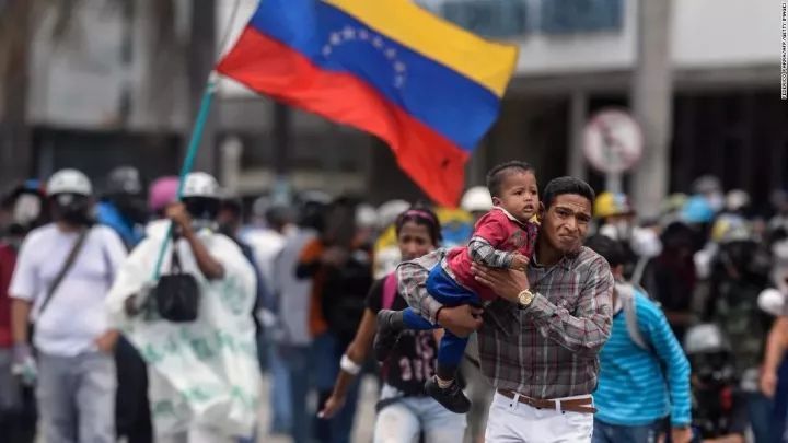 躲避游行冲突的委内瑞拉父子(来源:cnn)