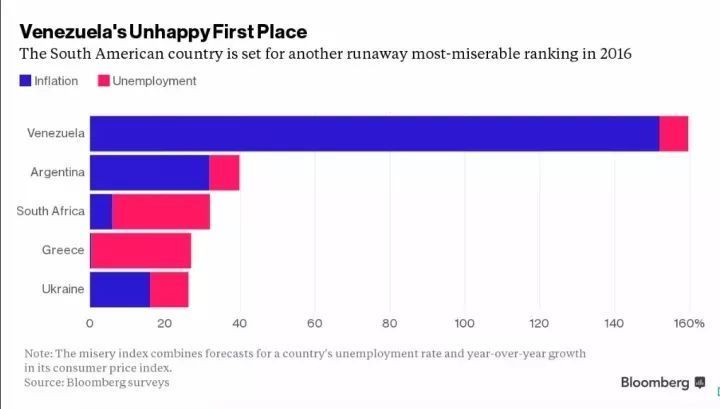 连续2年,在世界各国“痛苦指数”排名调查中,委内瑞拉持续“爆表”,位居首位。