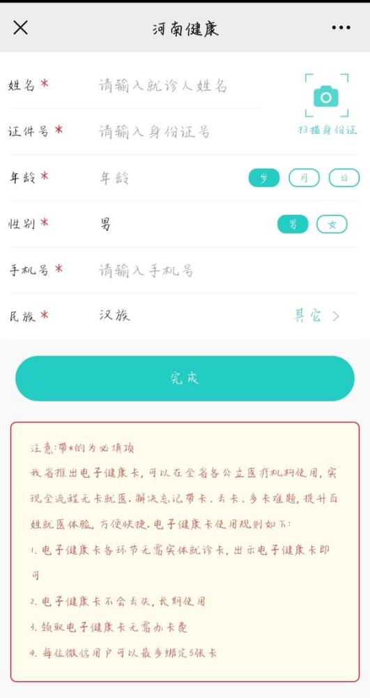 选好办卡方式(如手动办卡)后,根据指示填写个人信息和手机号,随后点击完成。