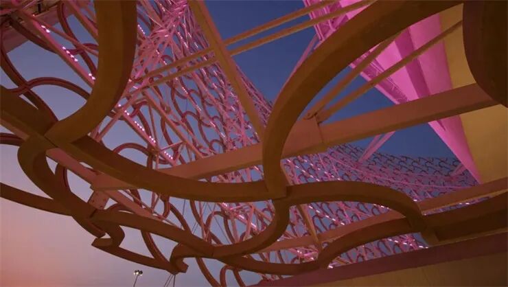 设计上,确保游客能从各个角度欣赏此装置,不同角度有着不一样的视觉效果;选址上选在了最繁华的多哈湾边上,与多哈天际线连成一体。
