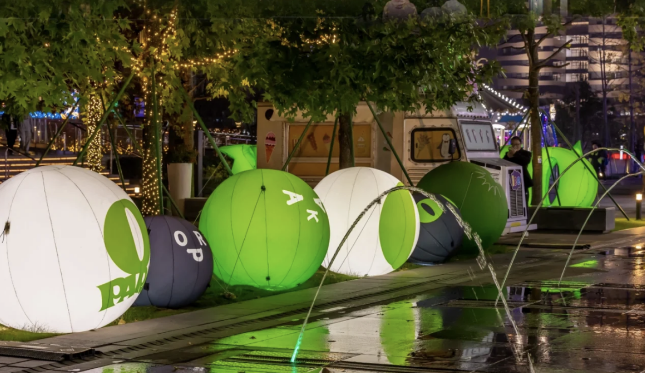 宁波文化广场的O PARK项目,为市民朋友打造了免费开放的世界杯限定主题的城市帐篷营地,一到晚上,老人小孩、年轻人都会选择聚集在这里。