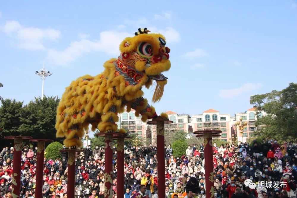 当天不仅有传统南狮贺岁、高桩舞狮表演