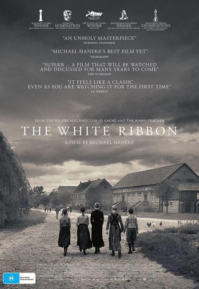 迈克尔·哈内克凭借这部以第一次世界大战前的德国为背景的寓言故事赢得了他的第一个金棕榈奖。一个小村庄的居民被神秘的暴力事件所困扰,这些事件主要加剧了他们赖以生存的不正常的社会准则,并隐晦地暗示了演变成纳粹主义的道德氛围。