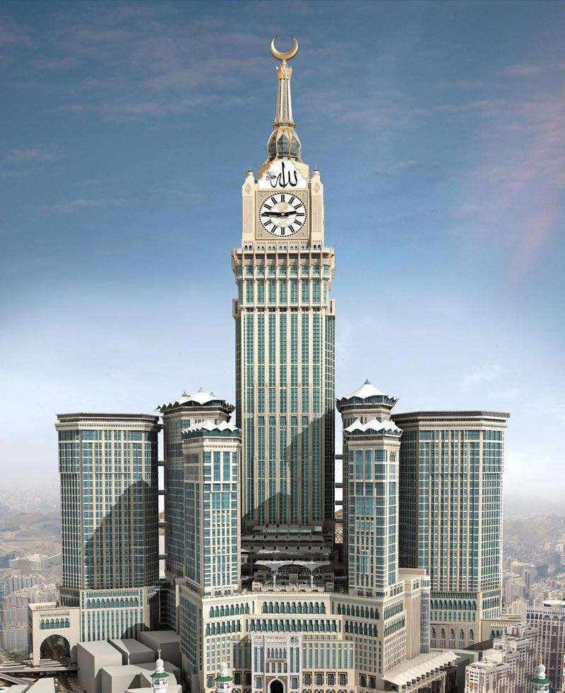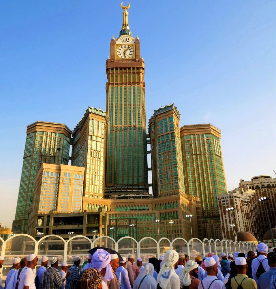 麦加皇家钟塔饭店位于沙特的圣城麦加,高度601米,楼层120层,是沙特的最高建筑,也是世界最高的钟楼。建筑面积150万平方米,投资150亿美元,完成于2012年。