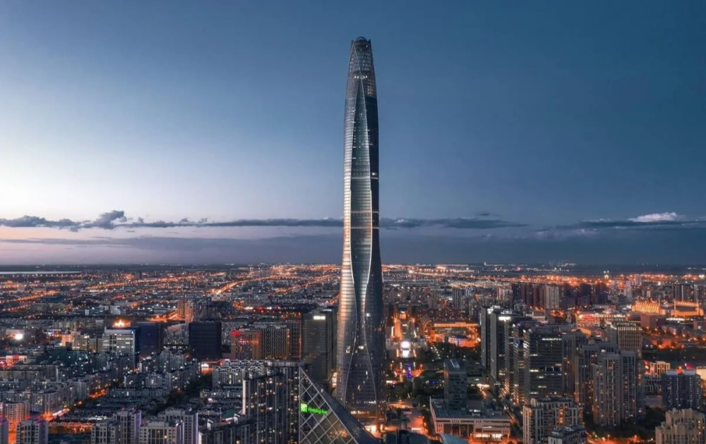 天津周大福金融中心位于天津开发区,建筑面积约39万平方米,塔楼总高度530米,地上103层,地下4层结构,是中国北方第一高楼,由美国SOM建筑设计事务所完成,