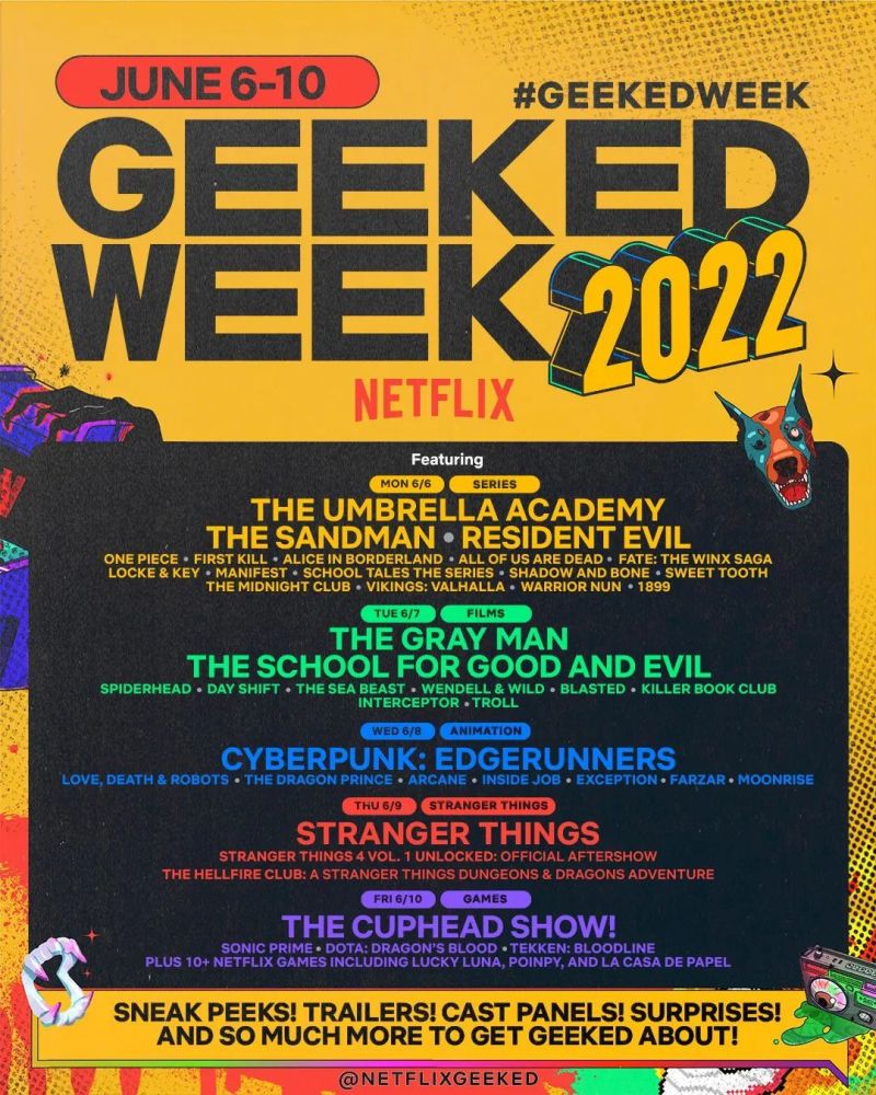 “极客周”是Netflix于去年创办的线上虚拟嘉年华。在为期五天的时间里,Netflix会陆续公开涵盖游戏、动画、漫画、影视等作品的新消息,类型则主要聚焦于科幻、奇幻、漫改、游改方面。