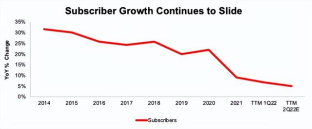 Netflix在2022年一季度订阅用户增速放缓,且总订阅数减少20万,这也是其近十年来订阅用户数首次下降。