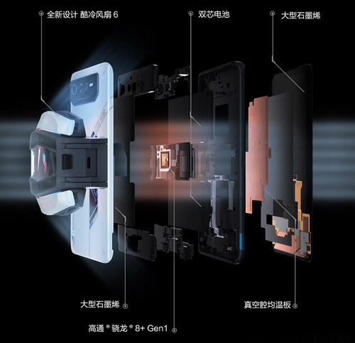 ROG精心研发出矩阵式液冷散热架构6.0,采用CPU中置,电池两侧设计,将发热源远离手持区域,保持握感舒适。机身内部注入3300mg航天级氮化硼冷却材料,与大面积均温板和石墨烯的相互配合,有效导出SoC及周围热量,避免核心高温降频。在酷冷风扇6的加持下,更是可以解锁X+模式,释放芯片全部性能,轻松驾驭各类游戏应用,毫无惧色。