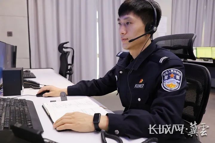 接警员董勃阳工作日常。雄安新区公安局供图