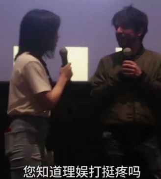 我们趁着翻译姐姐晚到的三分钟时间里,让他拿着理娱打挺疼的手幅,接受了一个中国大陆及港澳台地区所有明星被问过的灵魂拷问:你知道理娱打挺疼吗?