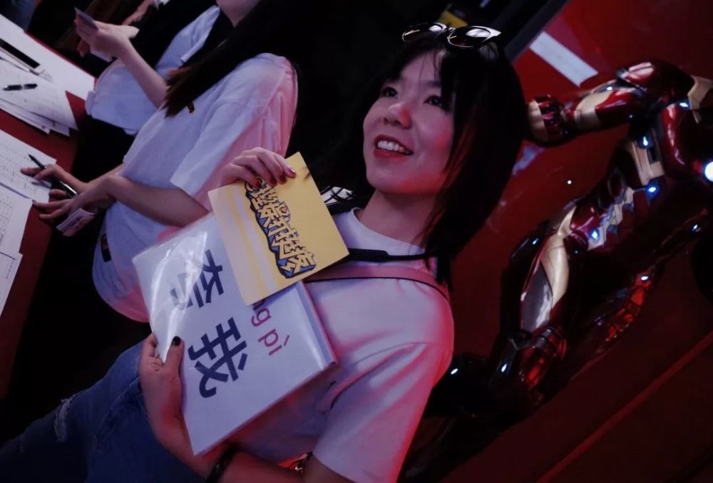 抱柱子举着“夸我(cai hong pi)”的白色提示板站在签到台后面的时候,她跟我说其实她非常紧张。