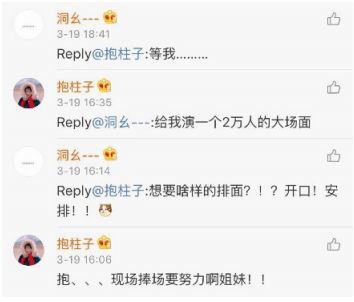 评论中有一位好心网友读出了她的紧张,在评论区承诺,要为她展现两万人的大场面。
