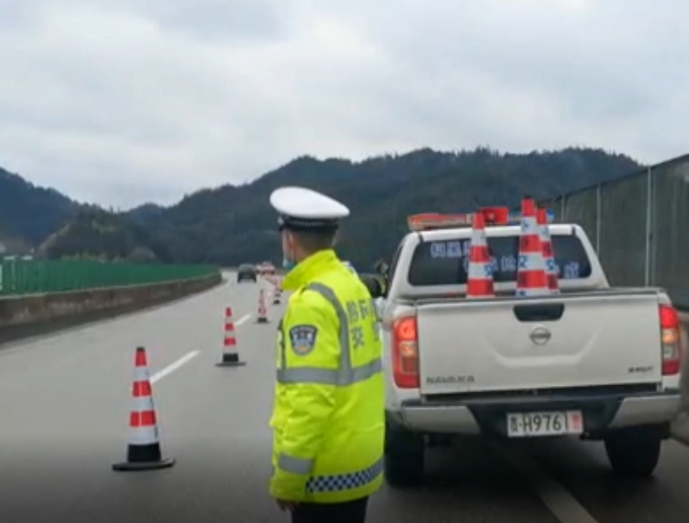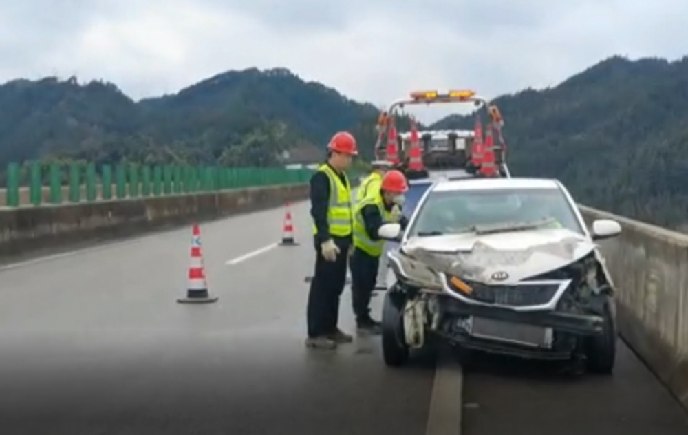 当日11时55分,黔东南州公安局交通警察支队高速五大队接到报警称:松从高速从江东往黎平方向,距离黎平服务区16公里大桥上,一辆小轿车发生交通事故,车辆受损严重,请求出警。接警后,值班员嘱咐驾驶员做好自身安全防护,车上所有人员迅速撤离至护栏外安全地带。并立即通知巡逻民警前往现场。民警到达现场后,只见现场一片狼籍,事故车辆逆行横停到高速行车道上,过往车辆纷纷避让通过。