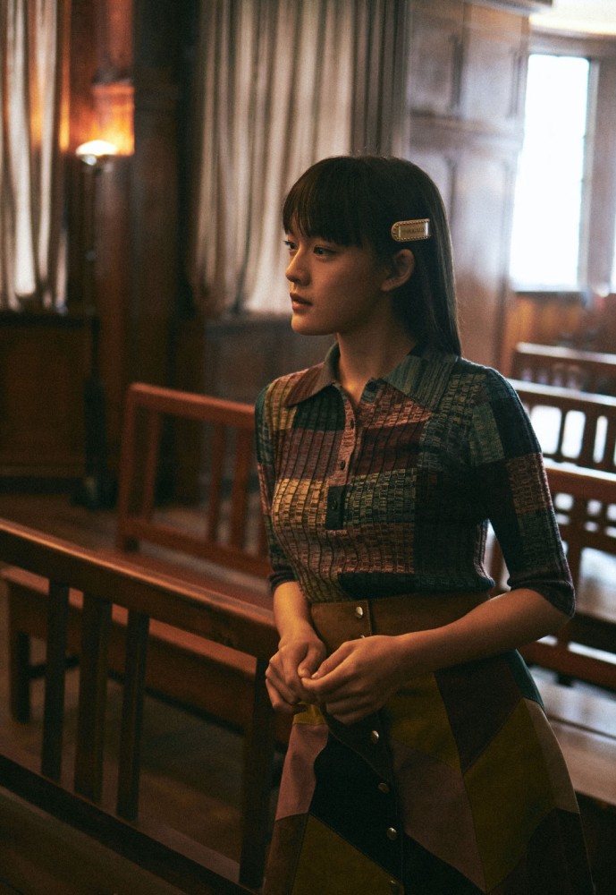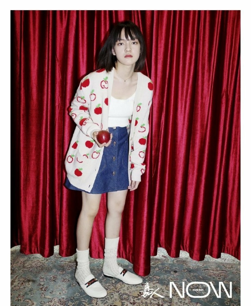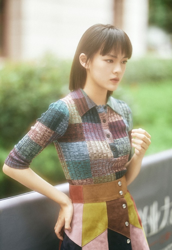 文淇搭配的是小清新风格,从衣服搭配到妆容造型都没有毛病,就是被摄影师拍出了140的即视感,并且把肩拍的很宽,整体看起来上下比例很不协调,甚至还有些呆滞。