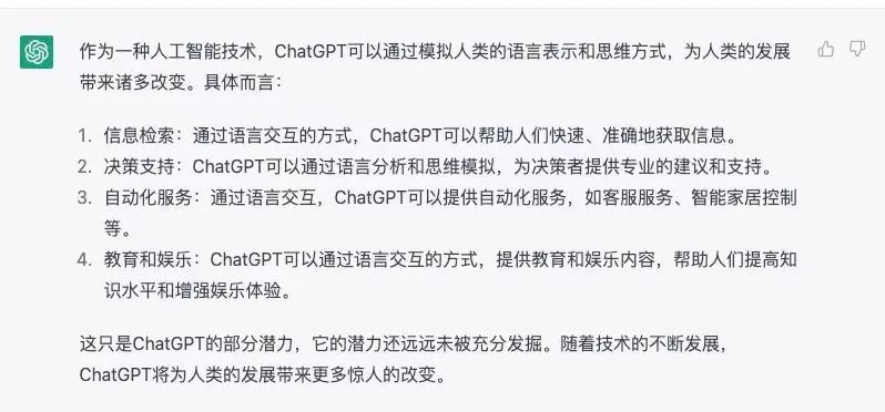 ChatGPT,你能为人类的发展做出什么改变?请举例说明