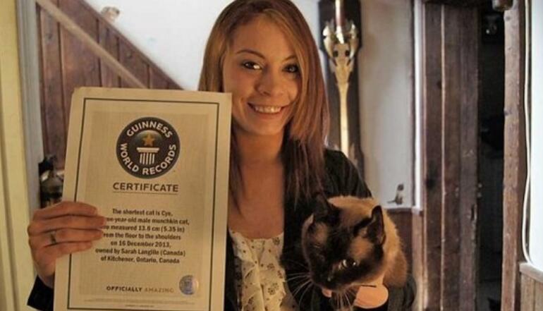 小伙伴们知道世界上最小的猫咪到底有多大吗?排名第一的是cye,这只猫咪的身高仅仅只有5.35英寸,也是属于世界上最小的猫咪之一,他出生在加拿大,因为外形太过于可爱,所以被主人收养到现在,可是让主人纳闷的是,这只猫咪越养他的身高却没有任何的变化,经过事件及因素记录,他被认证为世界上最小的猫咪,这只猫咪的身高仅仅只有一只易拉罐的大小,更有趣的是这只猫咪的腿非常的短