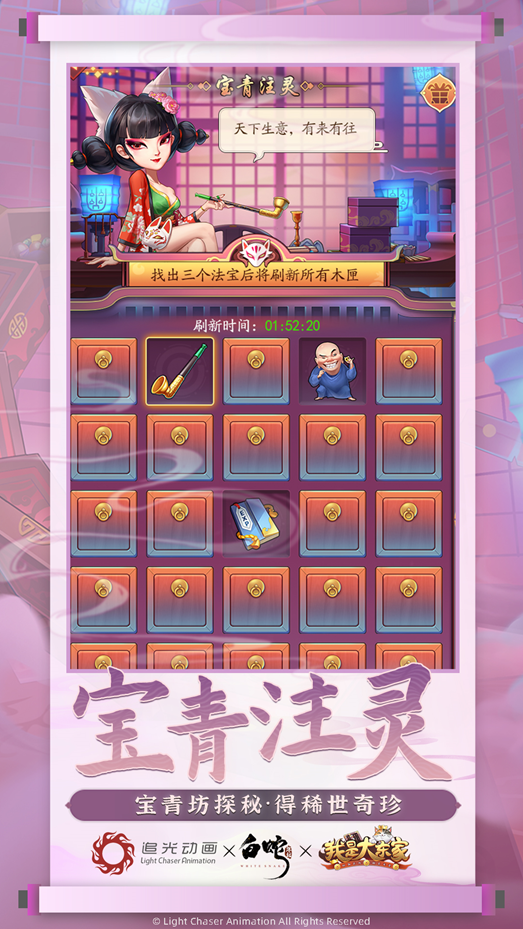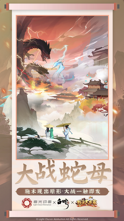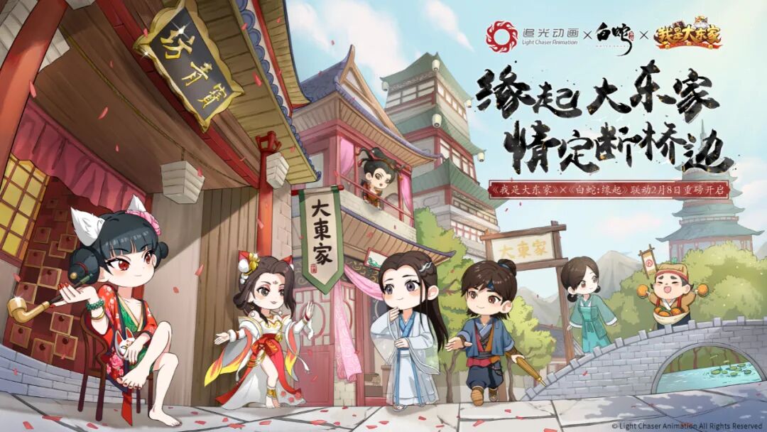 继与腾讯动漫《狐妖小红娘》、杭州玄机科技《秦时明月》、央视动画《西游记》、上海美术制片厂《宝莲灯》合作后,益世界《我是大东家》进一步完善自身国风营销计划布局,与《白蛇:缘起》展开联动,共同探索国风宇宙。