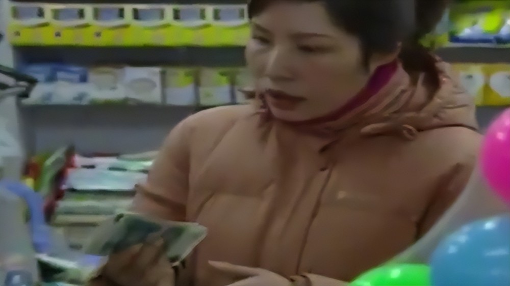 老妈妈是杨继珍,脸色比较正常,但嘴唇微微撅起。