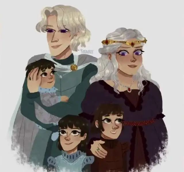 接下来是无冕之王雷妮丝公主,她嫁给了极具权势的海上霸主、人称海蛇的克里瓦列里安,最后生下两名孩子,儿子莱诺和女儿兰娜。