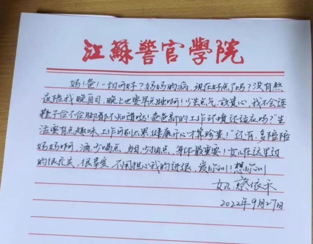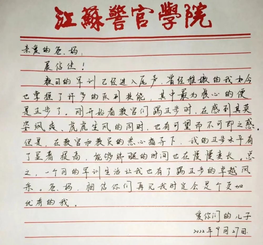 云中谁寄锦书来?洋洋洒洒,修得家书一封;见字如晤,个中苦乐尽诉诸父母。秋叶渐红,苏警院一年一度的“新生家书”活动正如火如荼地开展,且随官小微一同看看22级新生在给父母的家书中都写了什么吧!