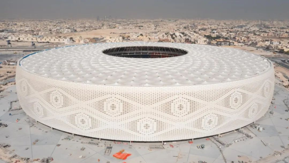 卡塔尔传统服装也成为世界杯场馆设计的灵感来源,阿图玛玛体育场外形正是模仿了阿拉伯男子传统编织帽,该建筑还原了传统帽子的编制感,球场外围覆盖着近25000平方米的带有蕾丝装饰的穿孔板,菱形的编织网格便成为视觉重点,远看真的有一种放大版帽子的感觉。