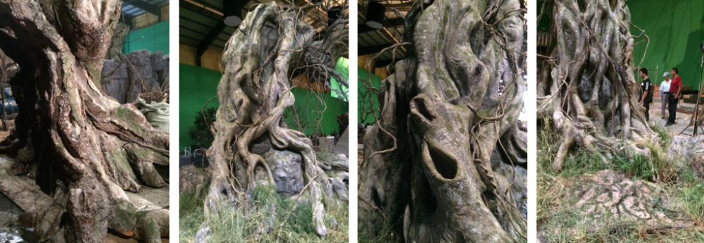 “ 我第一次来青岛是2001年,是拍杨紫琼主演的《天脉传奇》,去了八大关、总督府,被老城区的万国建筑群所吸引,当时的拍摄就得到了青岛市政府的很多支持。” 2017年,钟剑伟来到青岛西海岸新区拍电影《一出好戏》,“那个山洞是我们搭建的,大约有四百平方米,因为影片中设定的背景是日本的一个火山岛,里面的石材是很难找到的。我们需要做大量的前期准备,需要给真实的山体、石头的肌理拍摄很多素材,包括颜色、润泽度、潮湿度、周围植被的模样,都要详细了解。然后,通过3D扫描下来再去建模,做出石头,再一块一块搭起来。在做实景之前,我们会给导演、美术指导先看模型,然后他们会告诉你哪里高一点、窄一点或者要加点什么,最后定下后我们再着手搭建。”