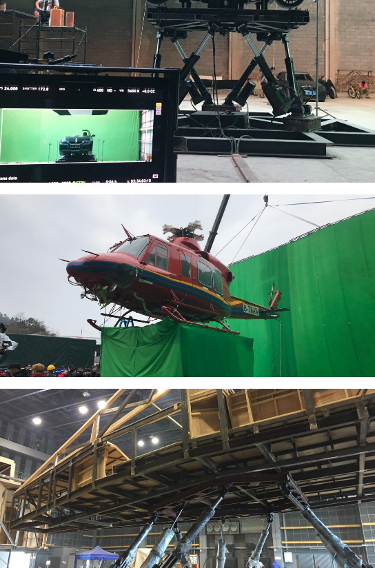 “之后我们还拍了《超能一家人》和《流浪地球2》。我觉得东方影都有着一流的硬件与服务,也在不断地实践电影工业化,我们如果扎根在这里,把技术传承给下一代,是非常好的选择,今年6月我就把公司落户到这里。” 一边传承一边创新,钟剑伟团队拥有行业内领先的六自由度平台及专业工程师,可以呈现出汽车、火车、船舶、飞机的运动,颠簸及各种动作效果。