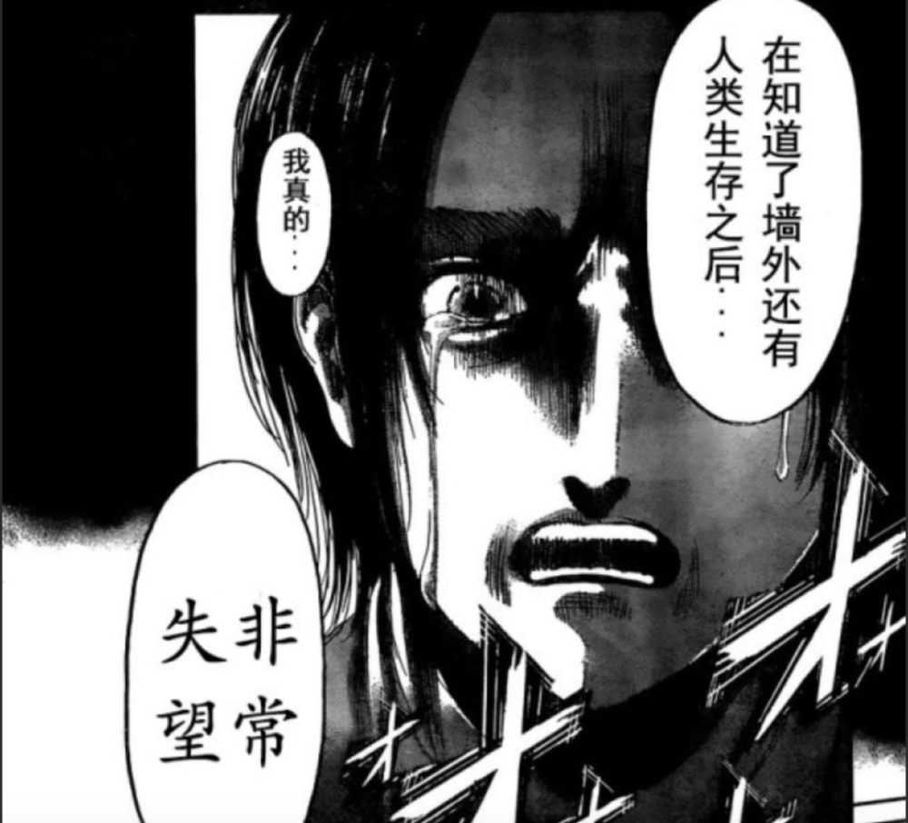 想要“获得自由”这件事本身已经被自由的执念套上了“枷锁”,这种对自由的欲望成为艾伦狭隘的期盼、扭曲的臆想,谏山创借阿尔敏、韩吉之口也转述了这个想法。