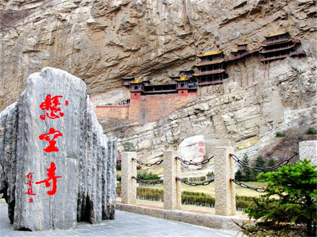 悬空寺原名悬空阁,是北岳恒山的最具特色的一大景观,整体建筑构思与布局是建立在道家的阴阳五行基础之上。悬空寺背靠翠屏峰,面对天峰岭,从西向东,寓意中显露着中华民族远古的天人合一乾坤安泰等原始哲学思想。悬空寺将力学、美学、建筑学融为一体,并且是我国极少有的三教合一的寺院,就是能把释迦牟尼、孔子、老子共同在一个殿里面供奉,悬空寺经过多少战争没有被毁掉,也可以说跟着它三教合一有很大的关系。