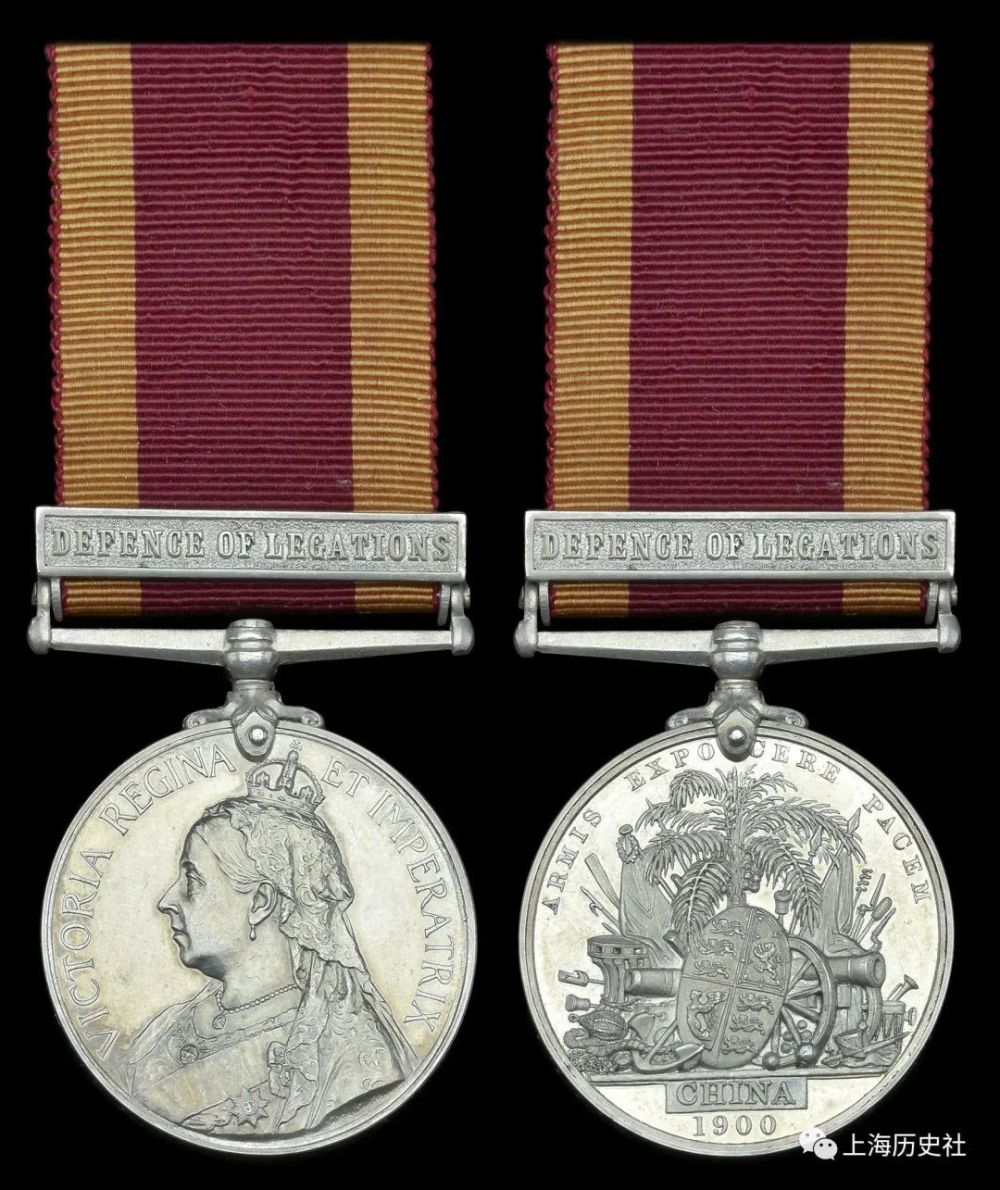 图1-2:大英欽差駐劄中華便宜行事全權大臣 (英国驻华公使) 萨道义爵士获颁英国政府“DEFENCE OF LEGATIONS”银质褒章一枚,以嘉奖其在1900年清军和义和团围攻北京使馆区事件中所作出的贡献。近年,同款银质奖章在国际拍卖市场价约15000~20000英镑。