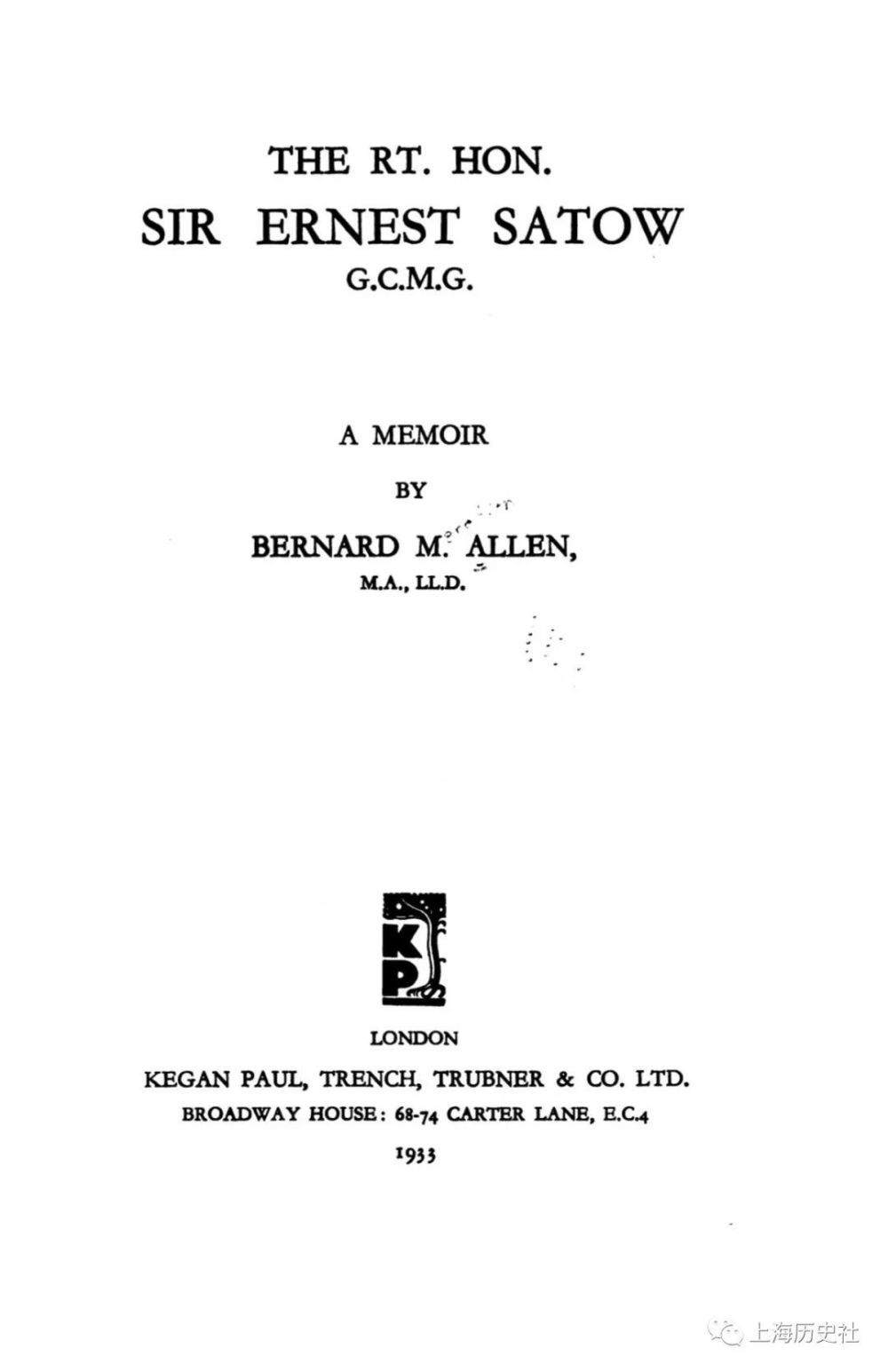图26-31:1933年,由伦敦 Bernard M. Allen 整理出版的萨道义爵士回忆录《The Rt. Hon. Sir Ernest Satow, G. C. M. G., a memoir by Bernard M. Allen》(扉页和目录部分)。