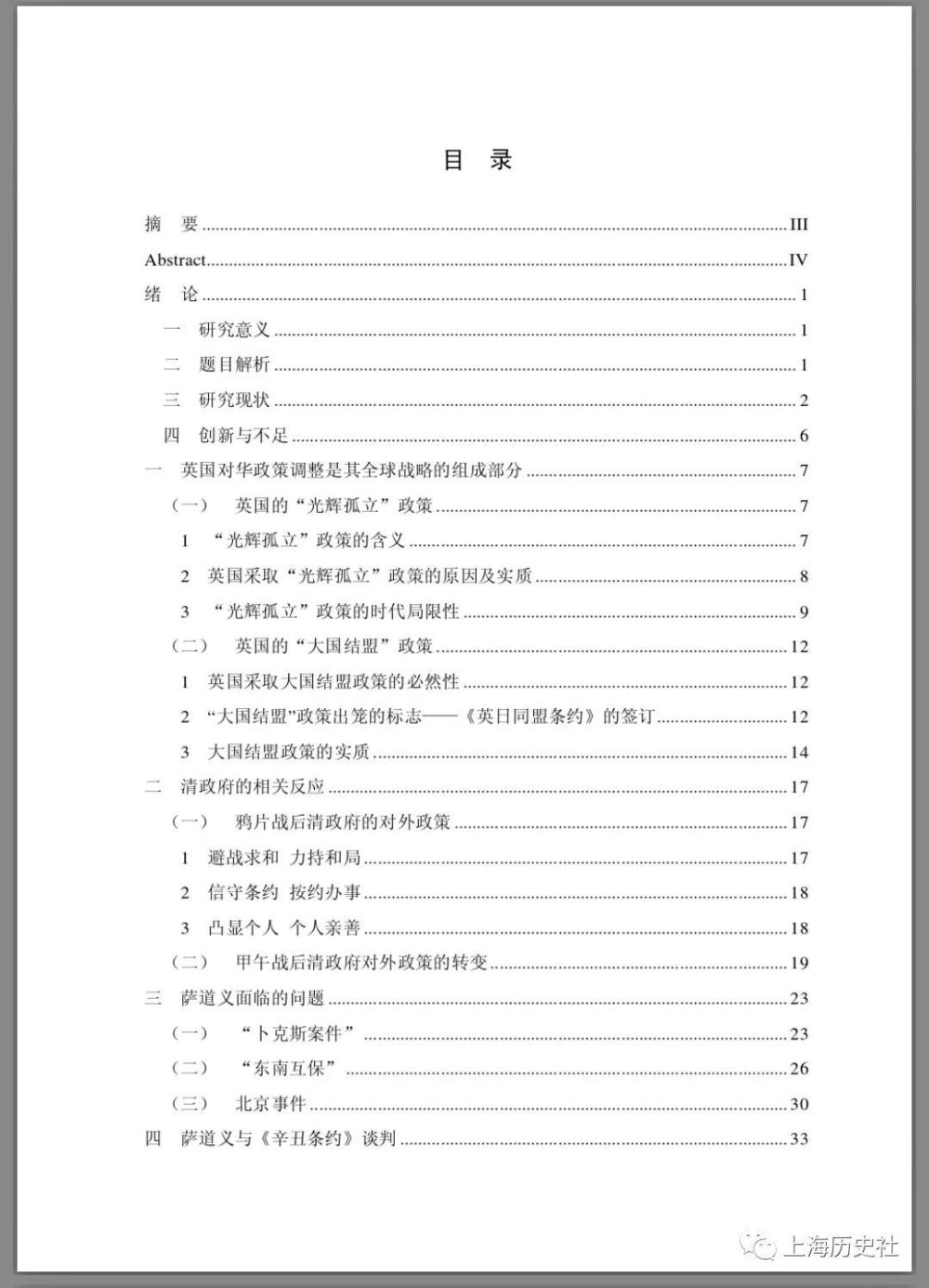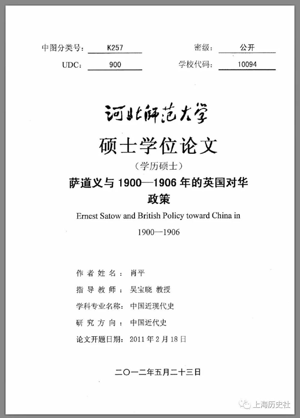 附录英国驻华公使萨道义爵士相关硕士学位论文一篇(仅封面和目录部分):