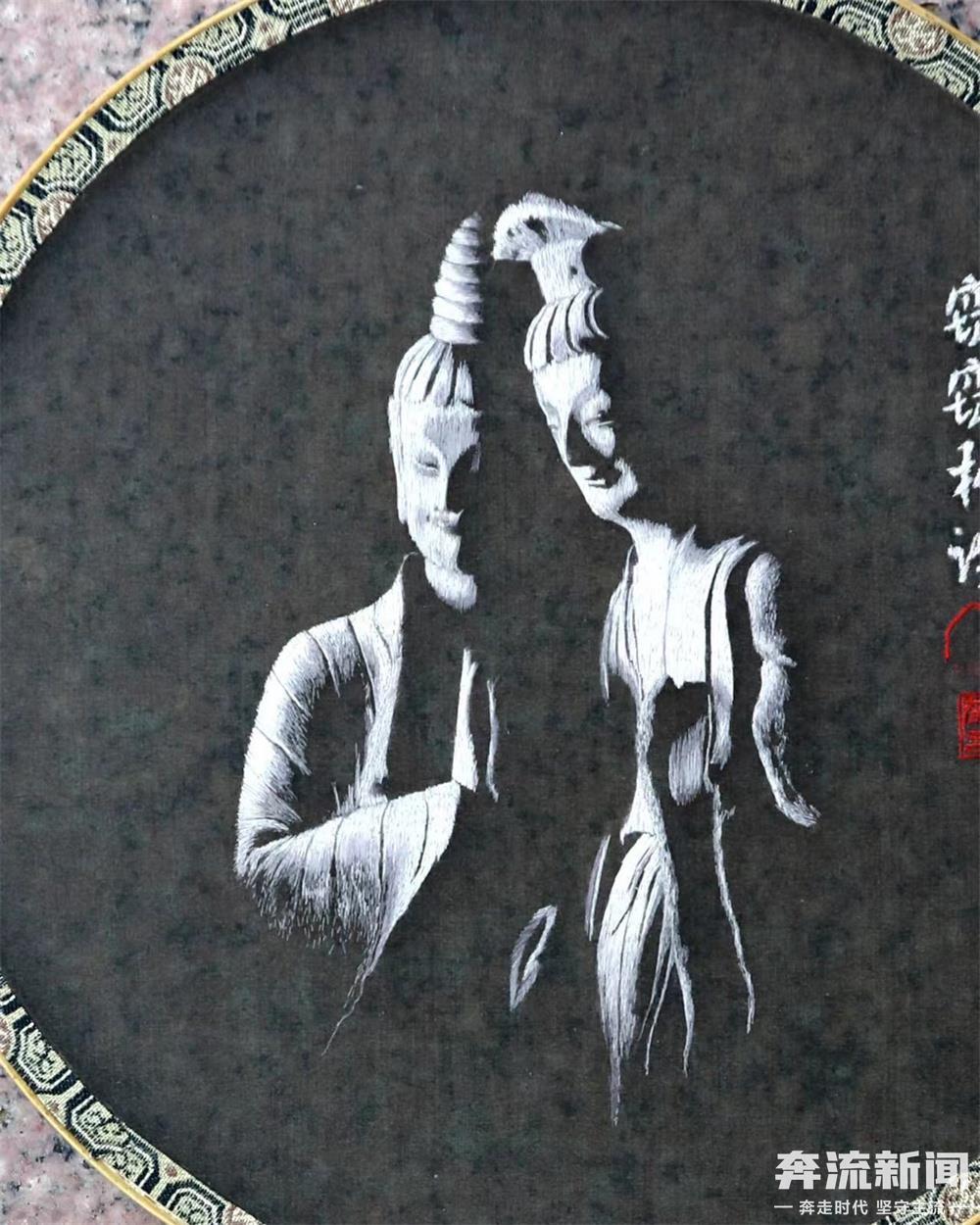 “时间在我这里是最不经用的,一动不动坐在绣架边工作几个小时,能看到的,只是这么短短几行。”曹苑春笑着说。由于费工费力,加之她对自己的作品精益求精,一幅选材于麦积山石窟133窟的《释迦会子》作品已阶段性绣了近3年时间,一针一线折射出时光浓缩丝间的重量。