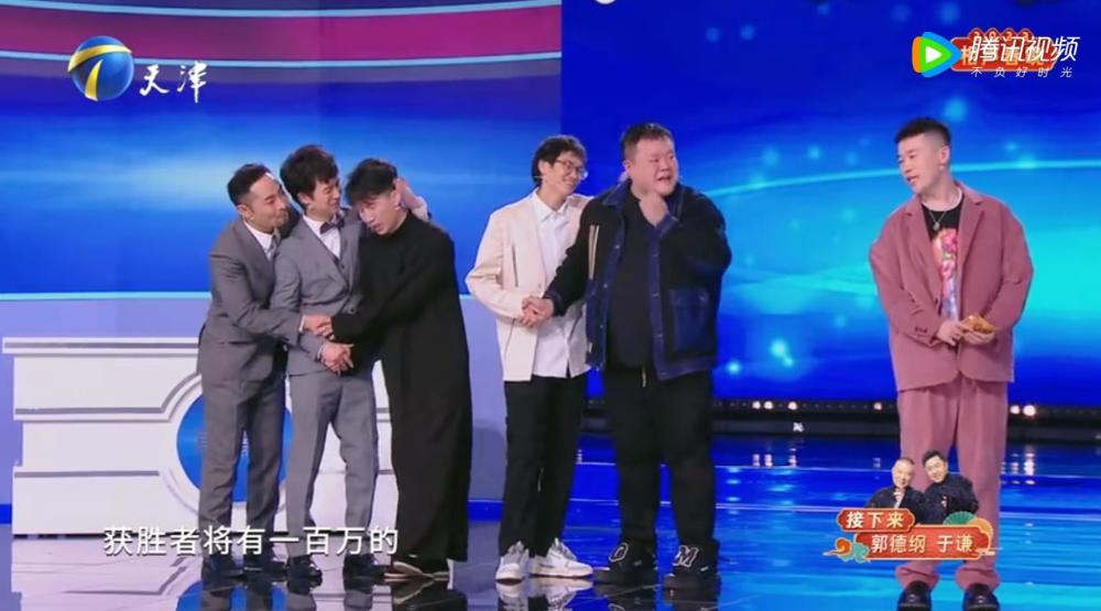 杨九郎:大家好,这里是天津卫视全新打造的喜剧竞技综艺《喜剧有新番》,我是主持人杨九郎,本节目由小葵花~这商务能占半期这商务。好的,喜剧有新番,包袱不一般,来,让我们有请三组嘉宾闪亮登场,看,我们的喜剧界是多么的和睦,他们一分一秒都不要分开。分开,分开,分开,丢不丢人,丢不丢人,你还打他,你丢不丢人,你丢不丢人你们,导演这一部分整个剪掉,好吧,麻烦您麻烦您。到底谁才是我们今天的主咖呢,还是先请他们分别做一下自我介绍。