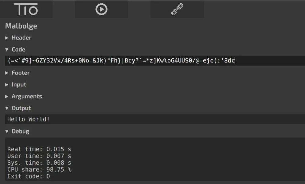 Malbolge 是 Ben Olmstead 在1998年发明的,这种 esolang 被认为是最复杂的编程语言。