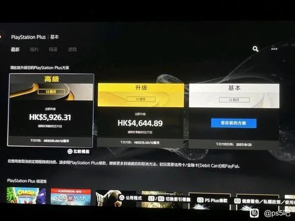 有PS5贴吧网友之前购买了2037年8月到期的PS+会员,需要支付5926.31港币(人民币约5021元)才能升级至高级版会员。