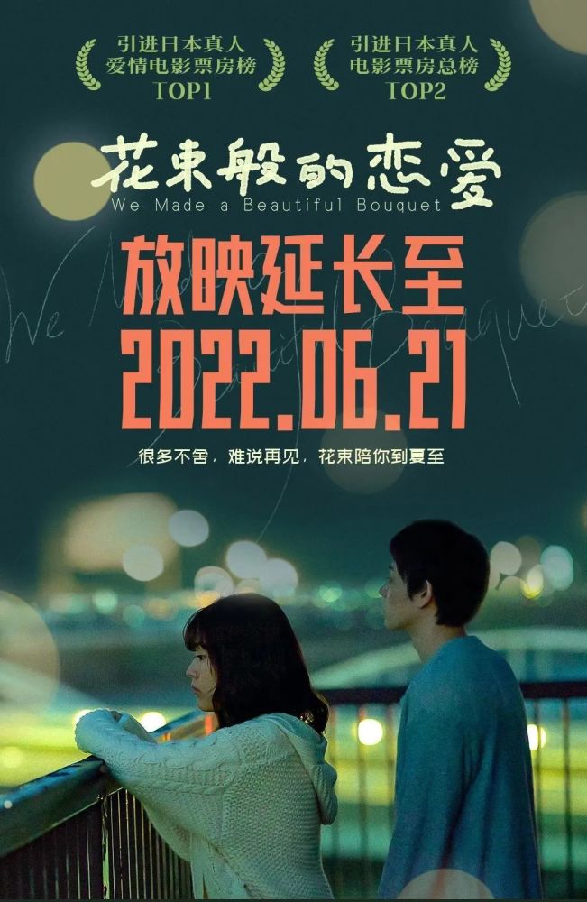 电影《花束般的恋爱》宣布延长上映至6月21日,该片今年2月22日在国内上映,菅田将晖、有村架纯双主演,清原果耶、小田切让等参演。讲述男女主人公因在东京明大前站错过末班电车而偶然相识,之后度过了令人难忘的五年时光的故事。