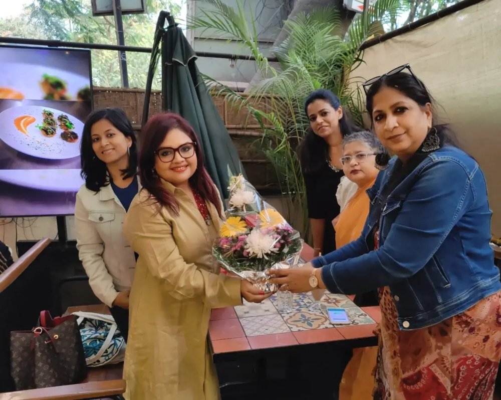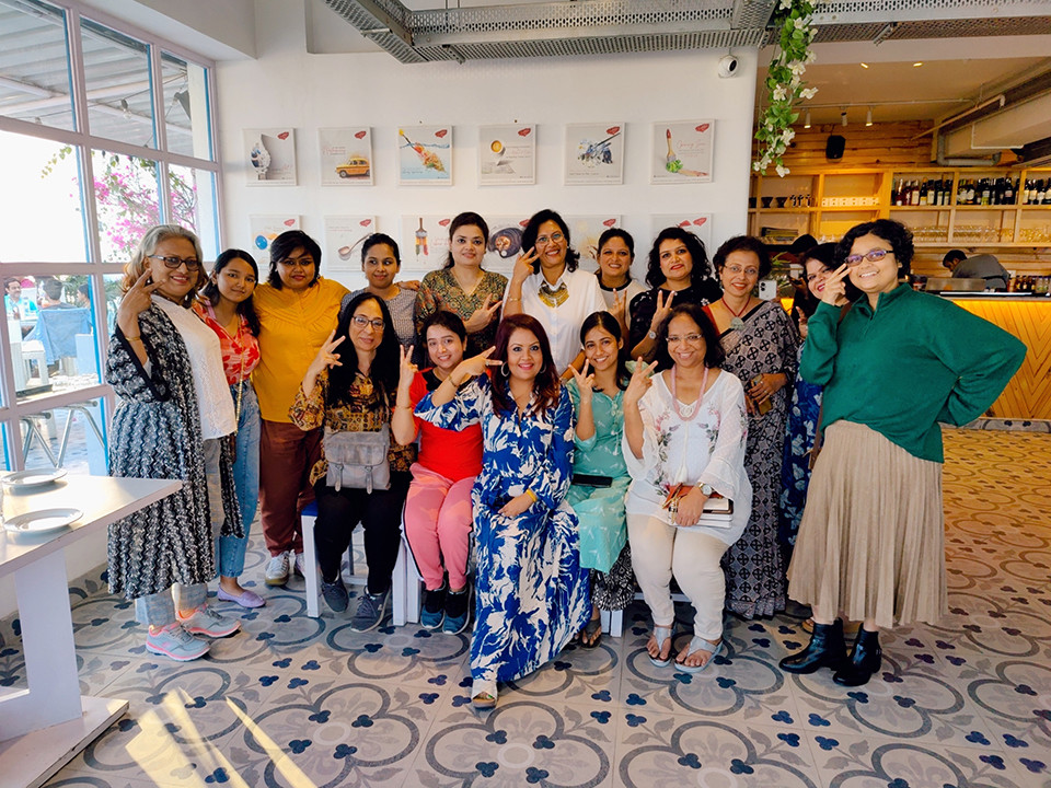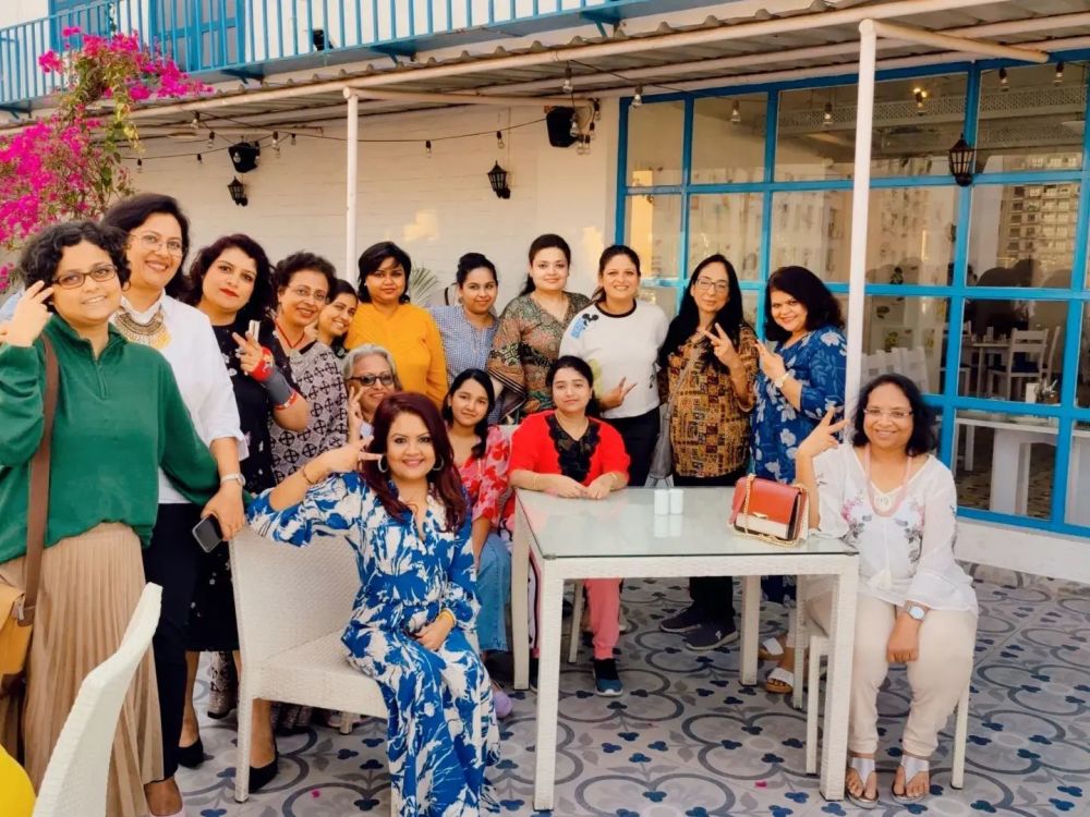 2023年1月,印度加尔各答,西莫伊(中间蓝色衣服)与印度单身女性社群女版活动。(受访者供图/图)