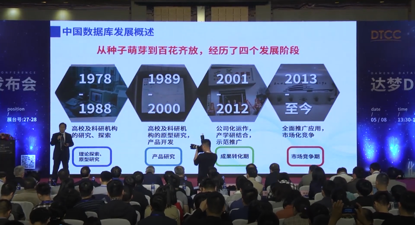 DM8新片发布会上,冯裕才的演讲《从达梦看中国数据库40年》现场