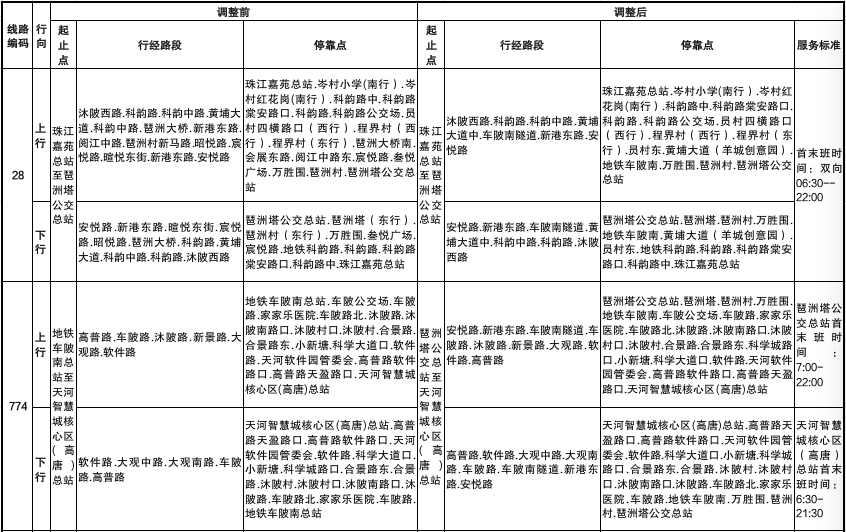 公共汽车28路等5条线路调整情况表