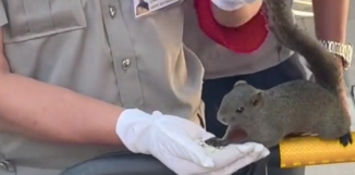 昆明翠湖一松鼠与保安亲密互动萌翻游客